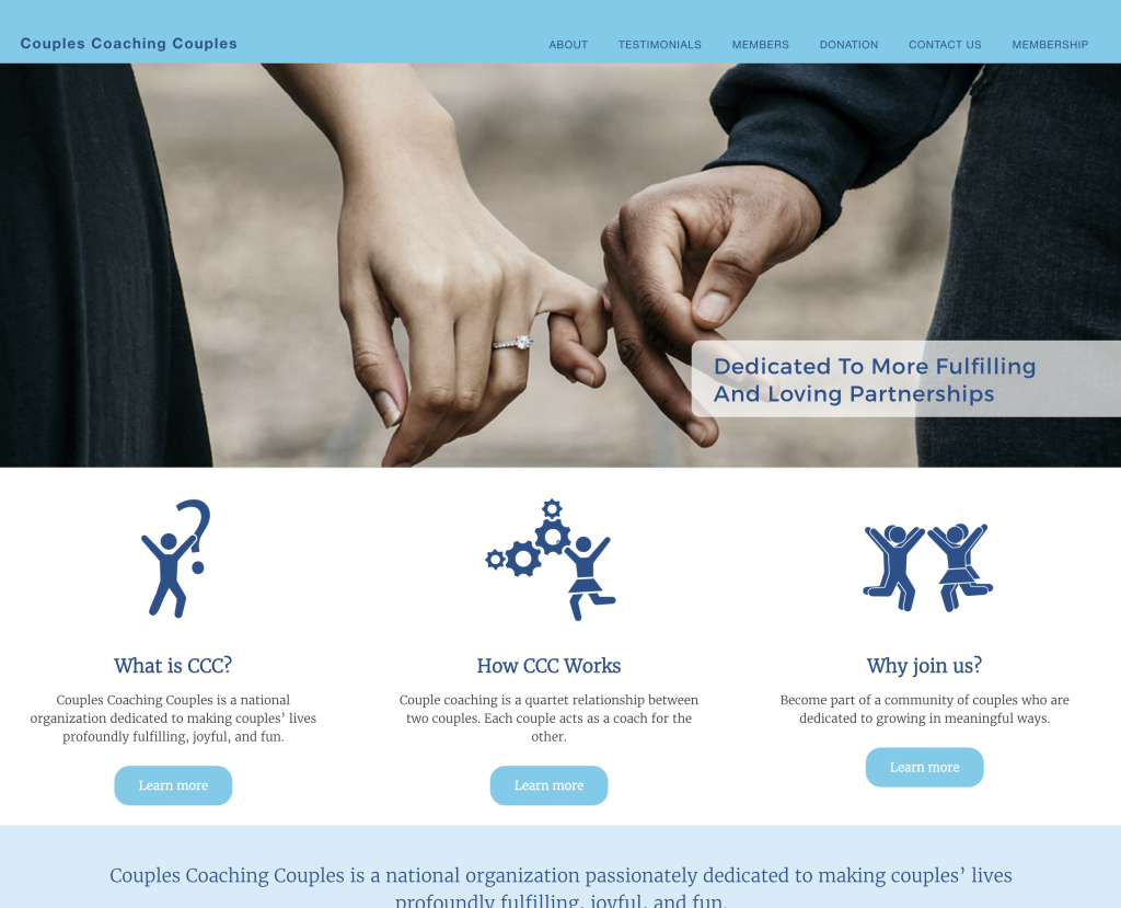 Couples Coaching Couples is the world’s largest couples mentoring organization. The organization’s website lacked the dynamic look and feel of its branding, and it didn’t reflect the diversity of CCC’s growing membership.