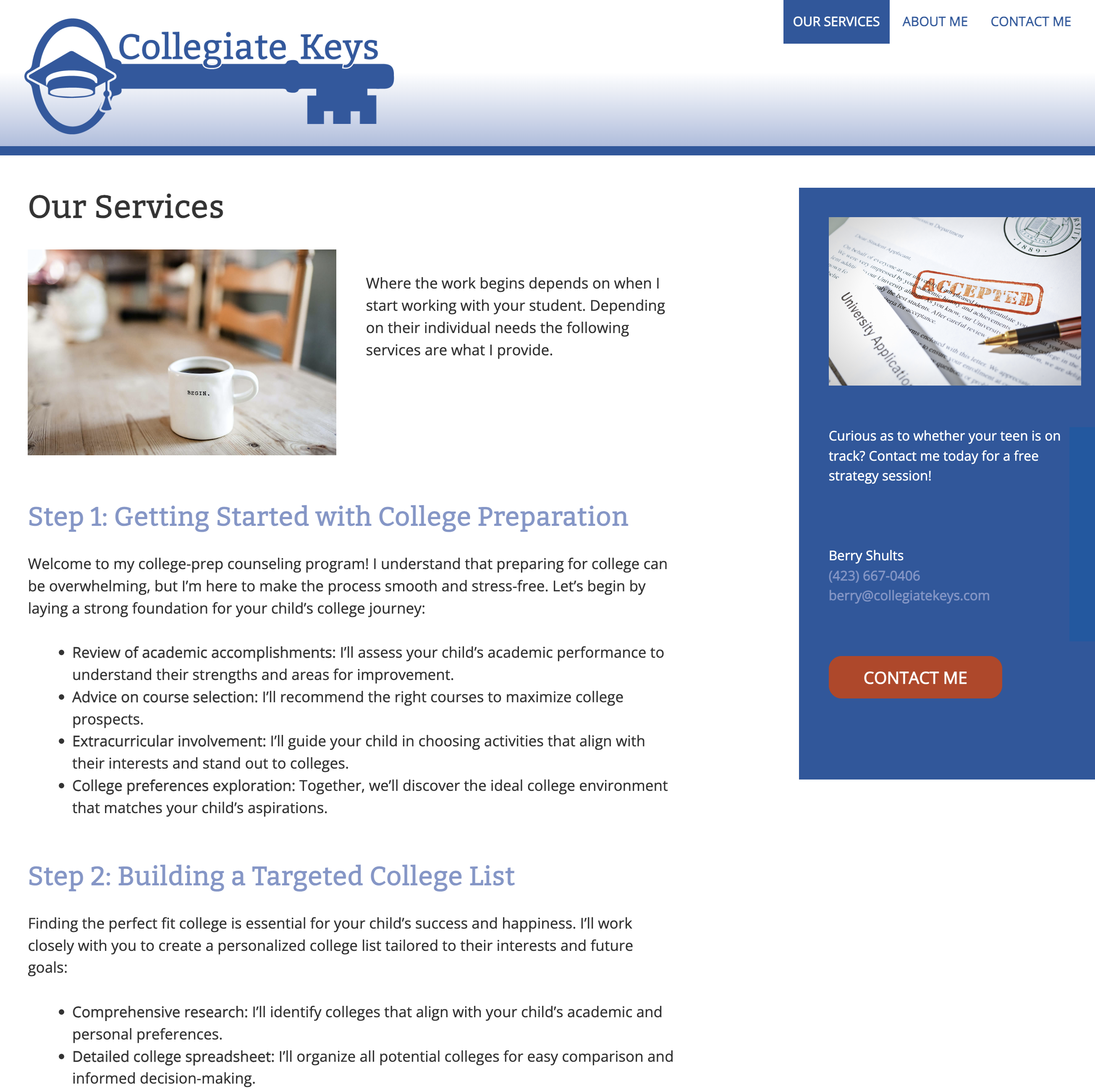 Berry Shults is a college counselor, helping high school juniors and seniors navigate the college admissions process.